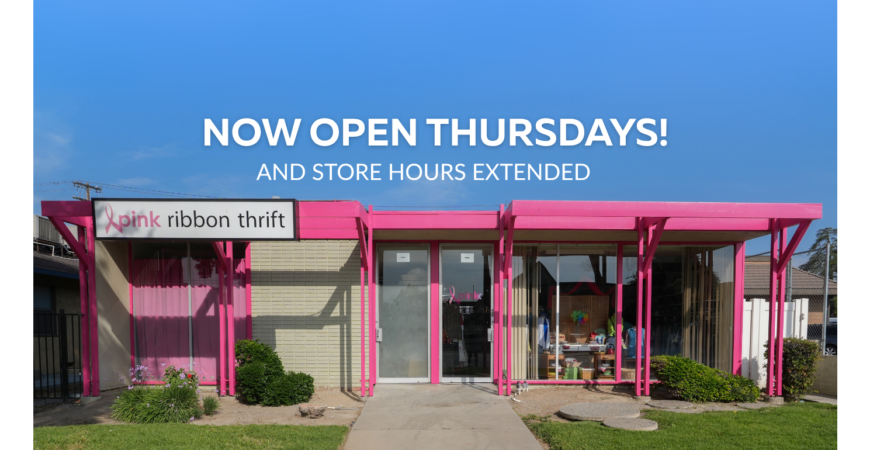 Shop for a cause at Pink Ribbon Thrift! Riverside’s boutique-style thrift shop that supports our local cancer resource center, The Pink Ribbon Place. The Pink Ribbon Place offers wigs, prosthesis, education, counseling, wellness, and more for individuals and families impacted by cancer in our community- all at no-cost.